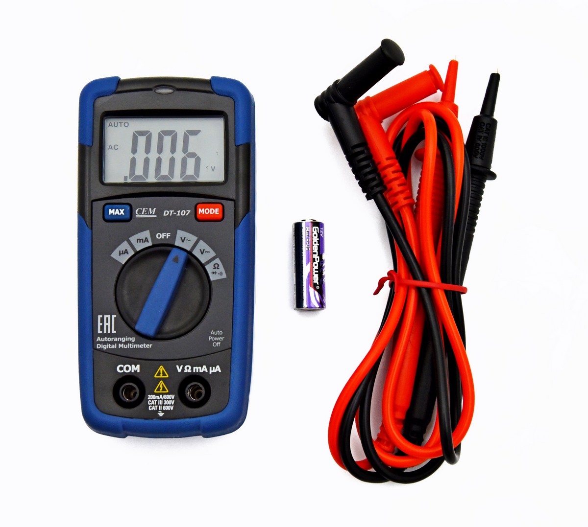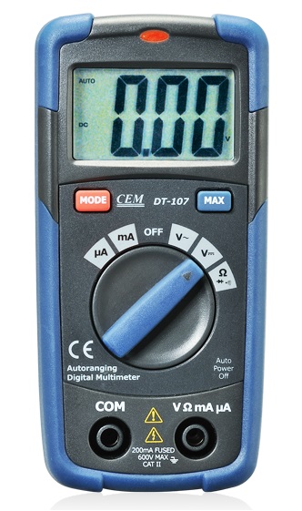 Наиболее востребован CEM DT-107 при выполнении измерений, требующих высокой скорости работы. При использовании данного мультиметра нет необходимости выбирать пределы измерений вручную — это прибор делает автоматически. Данная функция отличает CEM DT-107 от младших моделей серии. Таким образом вы сократите время подготовки к производству замеров и исключите возможность повреждения измерительного контура из-за случайной ошибки при выборе диапазона. Дополнительную защиту от перегрузок обеспечивает внутренний сменный малоинерционный предохранитель.