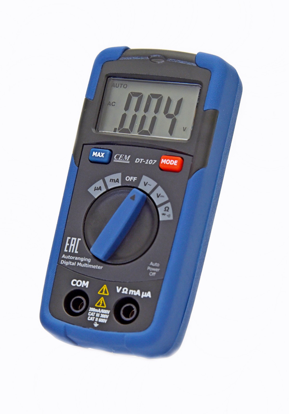 Помимо отслеживания мгновенных результатов измерений, мультиметр CEM DT-107 может фиксировать наибольший уровень измеряемой величины постоянного напряжения или силы тока посредством функции MAX Hold. Это даёт возможность точнее определять плавающие показатели.