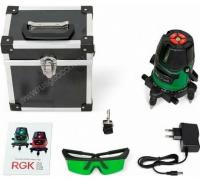 На лучах, спроецированных лазерным уровнем RGK LP-64G, отмечаются специальные точки для более удобного позиционирования плоскостей. Благодаря этому, линии будут видны даже при ярком свете с большого расстояния. Точность прибора составляет ± 0,2 мм/м, а радиус видимости, составляет до 30 м, в зависимости от условий освещенности
