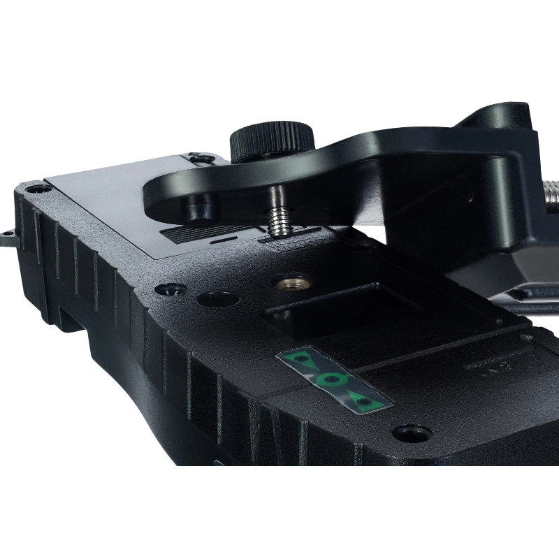 На корпусе есть светодиодные индикаторы и два пузырьковых уровня, которые ускоряют установку. Для стационарного крепления есть стандартная резьба 1/4 и кронштейн. Это позволяет ставить прибор на рейки, стойки и другие поверхности.