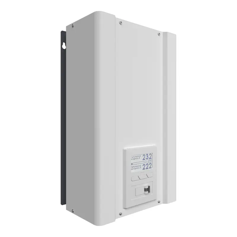 Стабилизатор рассчитан на номинальную мощность до 7 кВА, что делает его подходящим для питания как отдельных мощных приборов, так и целых групп оборудования в жилых домах, офисах или производственных помещениях. Рабочий ток достигает 32 ампер, что также говорит о его способности выдерживать значительные нагрузки. Устройство использует тиристорный тип ключей, что обеспечивает бесконтактное переключение и, как следствие, повышенную надёжность и долговечность узлов стабилизации. Электронное управление позволяет добиться высокой точности стабилизации — отклонение выходного напряжения в рабочем диапазоне составляет всего 2,7%, что полностью исключает вредное воздействие скачков на технику.