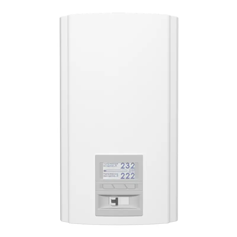 Устройство рассчитано на работу с нагрузкой до 7 кВт (номинальная мощность), что делает его универсальным решением как для промышленных объектов, так и для ответственных бытовых систем. При рабочем токе 32 А стабилизатор демонстрирует высокую эффективность даже при максимальных нагрузках, сохраняя стабильность выходных параметров. Особого внимания заслуживает его энергоэффективность: потребление в режиме ожидания не превышает 20 Вт, а КПД составляет не менее 98%, что минимизирует потери энергии и снижает эксплуатационные расходы.