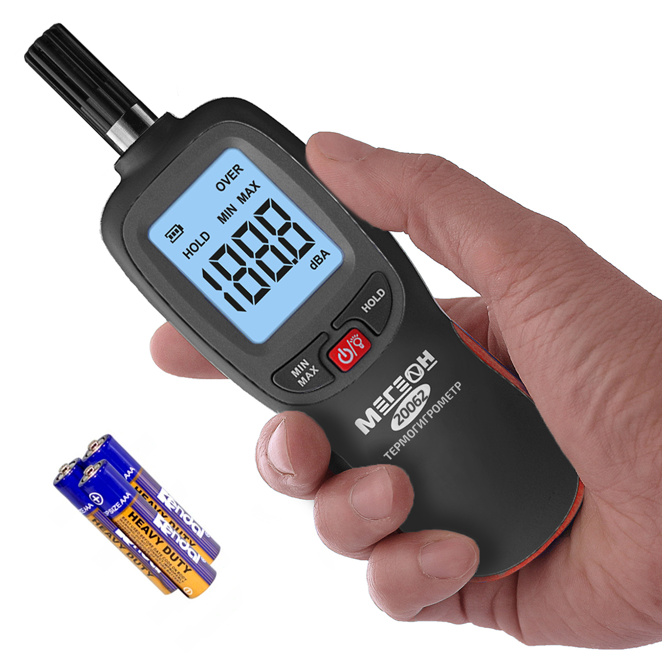 МЕГЕОН 20062 – новинка в модельном ряду цифровых высокочувствительных термогигрометров. Представленный прибор предназначен для быстрого определения параметров температуры и влажности с высокой точностью в помещениях и на открытом пространстве. Помимо этого с его помощью можно определить точку росы, снять показания влажного термометра, а также зафиксировать максимальные и минимальные значения измеренных данных. Преимуществом также является функция записи результатов в память ёмкостью 999 ячеек. Измеритель получил современный дизайн и компактные размеры. Модель имеет эргономичную форму корпуса, удобное расположение органов управления на передней панели и большой ЖК- дисплей с яркой светодиодной подсветкой. На заднее стенке предусмотрено монтажное отверстие для установки на штатив, благодаря чему достигается максимальное удобство при эксплуатации.
