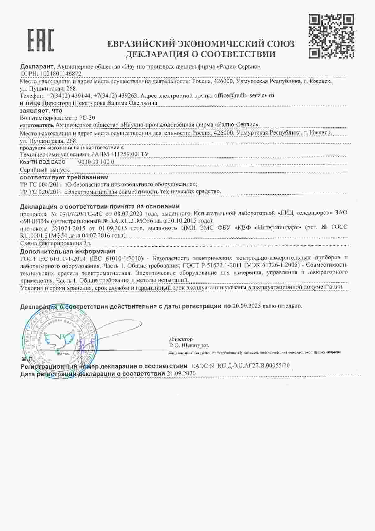 - Вольтамперфазометр Радио-Сервис РС-30 с клещами КТИР-30 и КТИ-30 (до 40 А)